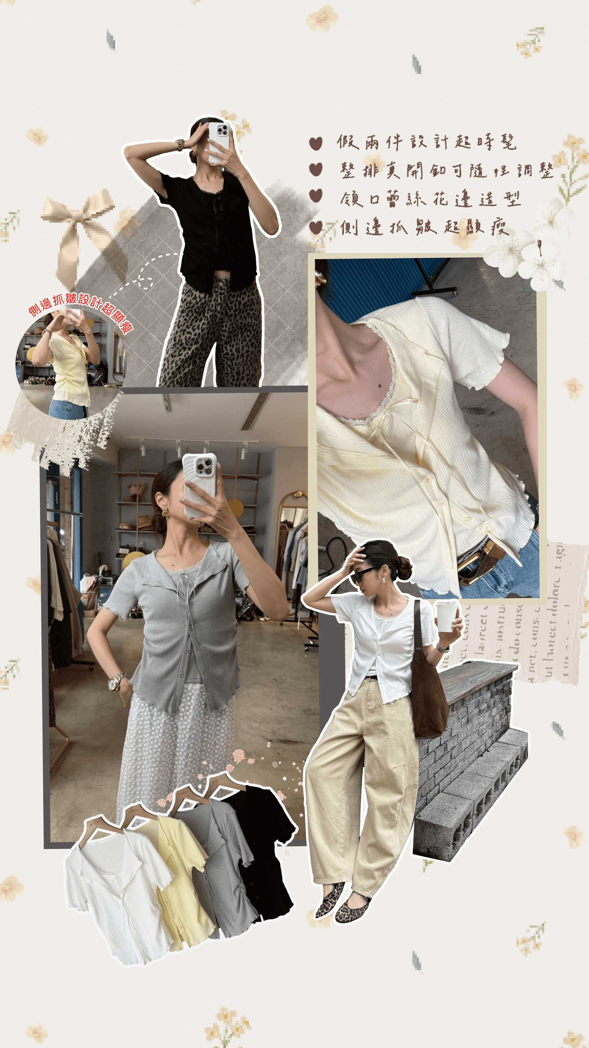 SS481 超美假兩件蕾絲排釦打底衣 - 4色