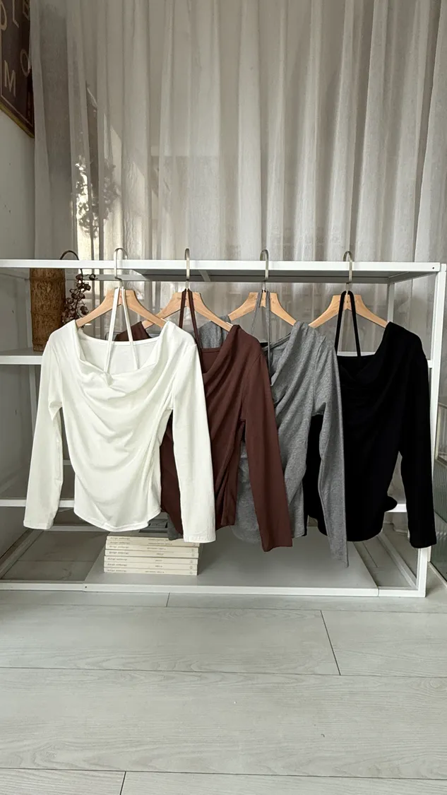 FW296 有包色價 .ᐟ.ᐟ 直角肩一字領長袖上衣 - 4色