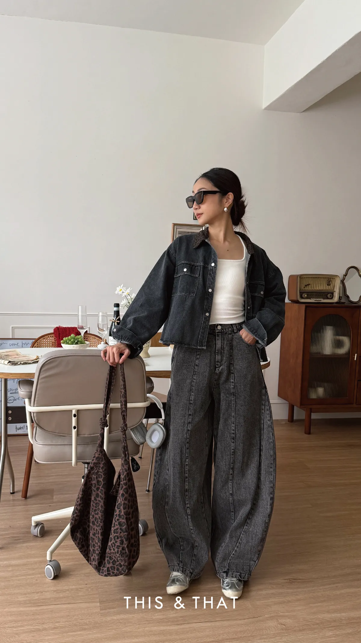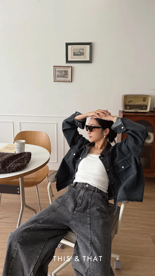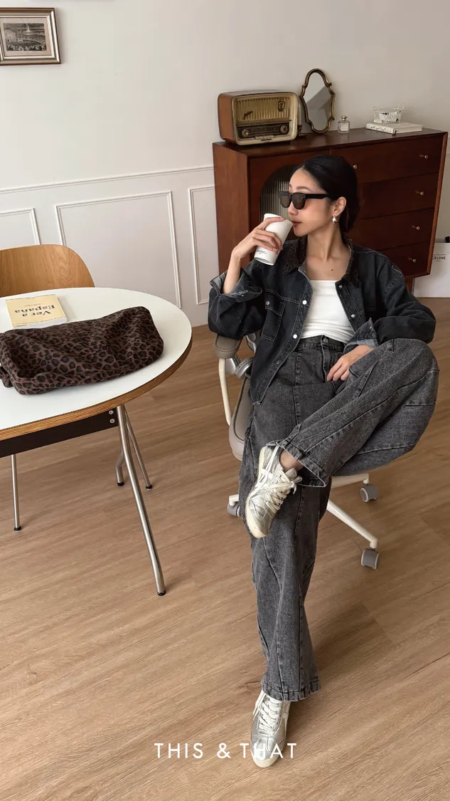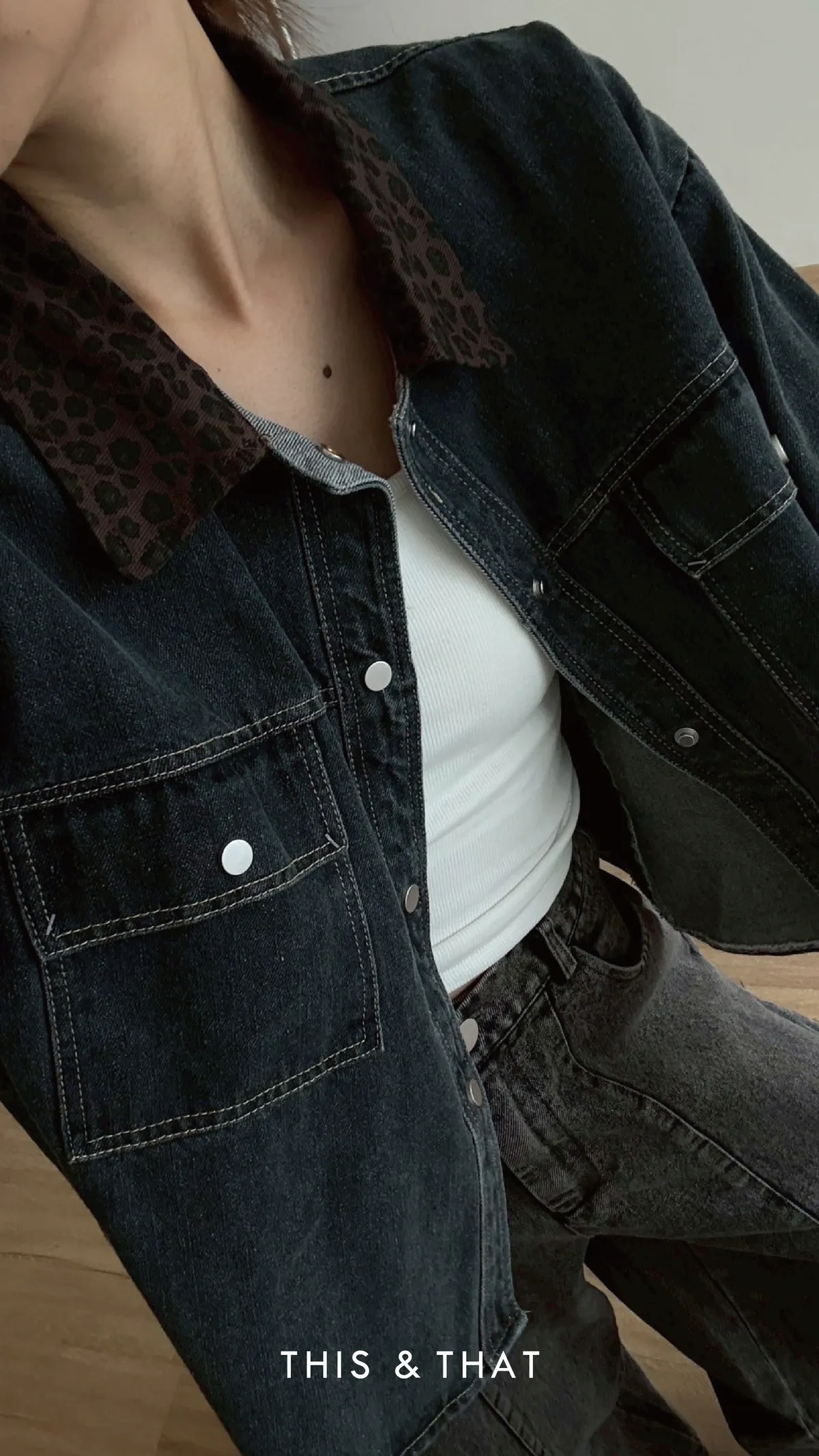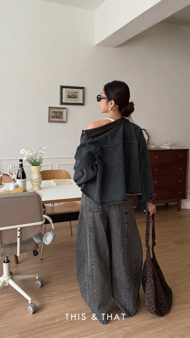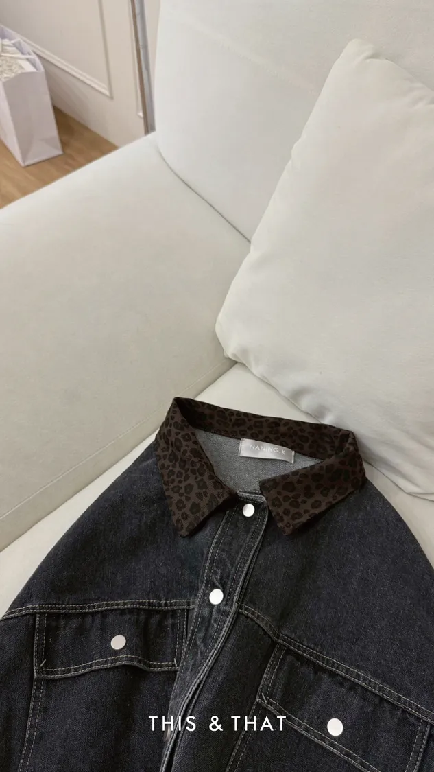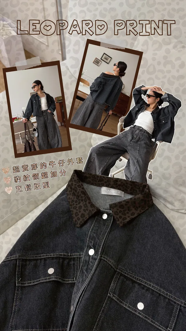 FW315 豹紋領牛仔外套