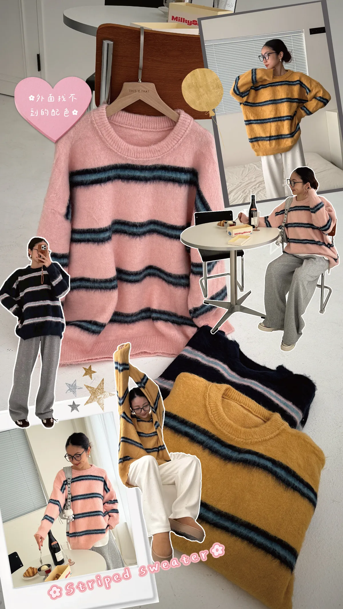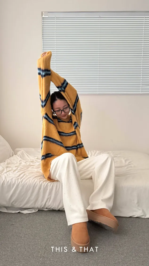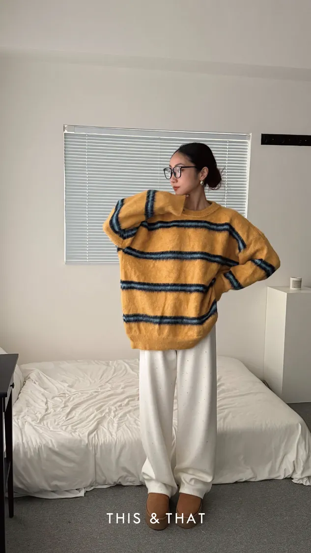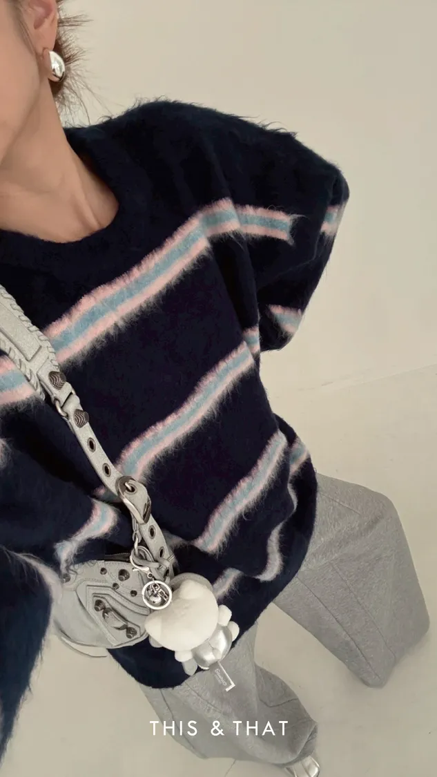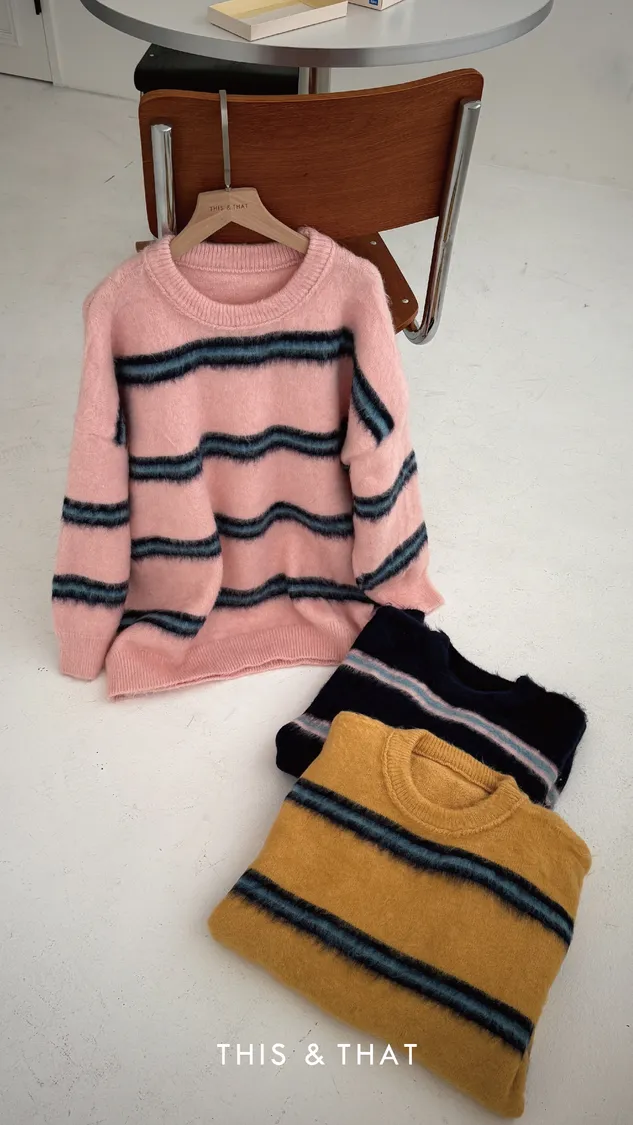 FW329 神仙配色!條紋手撕毛衣 - 3色