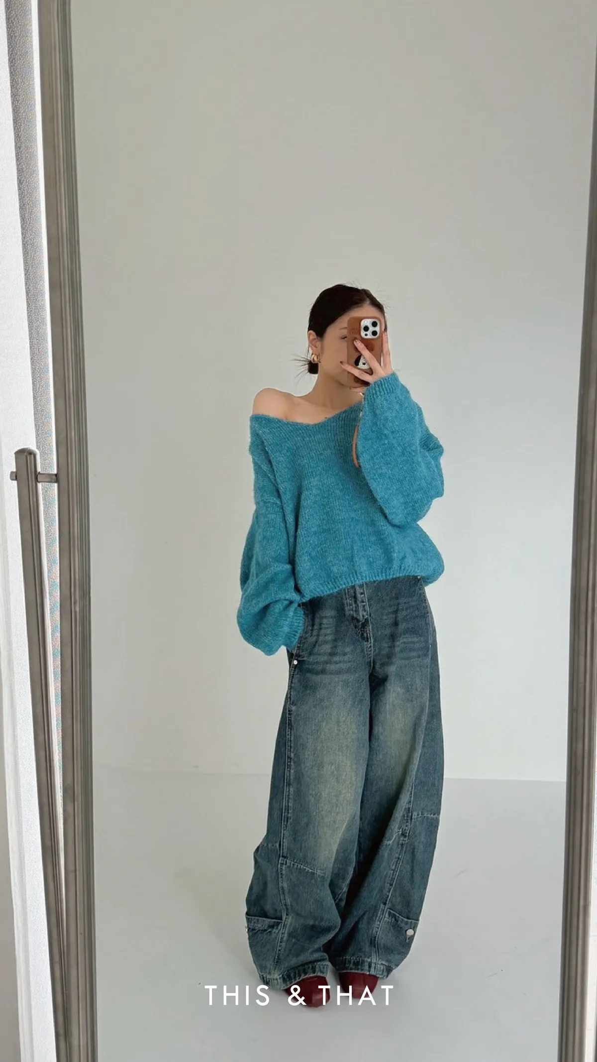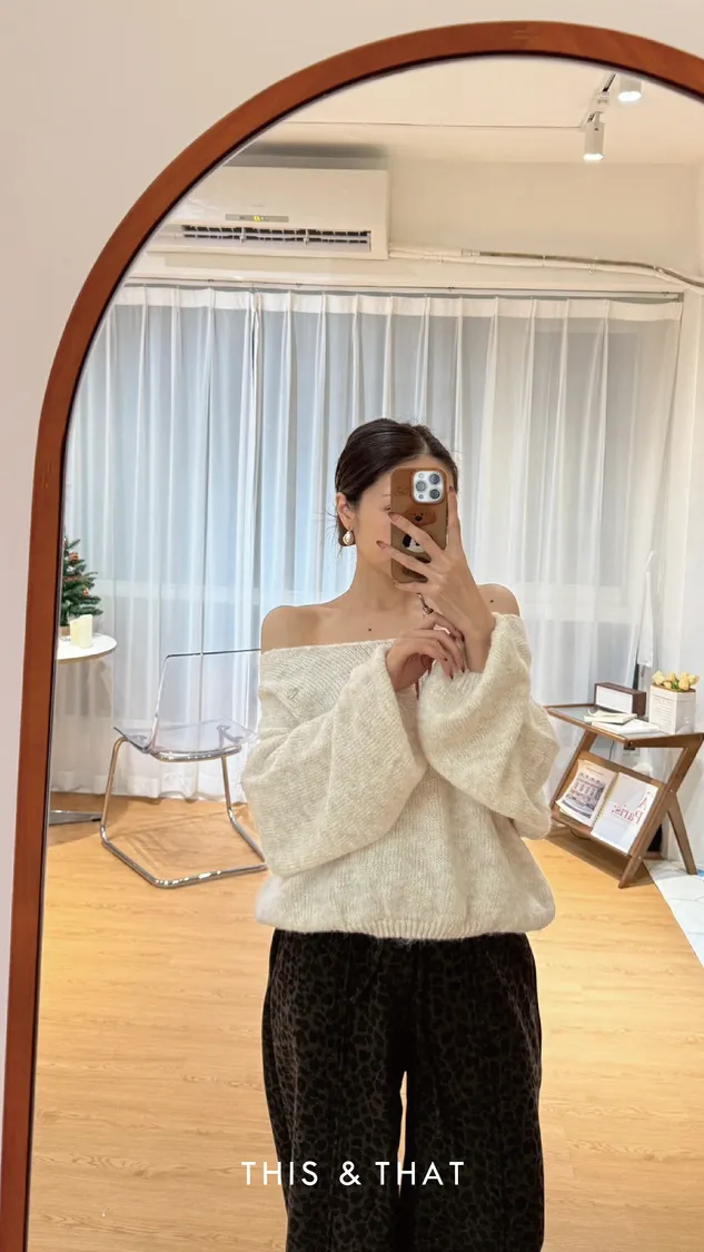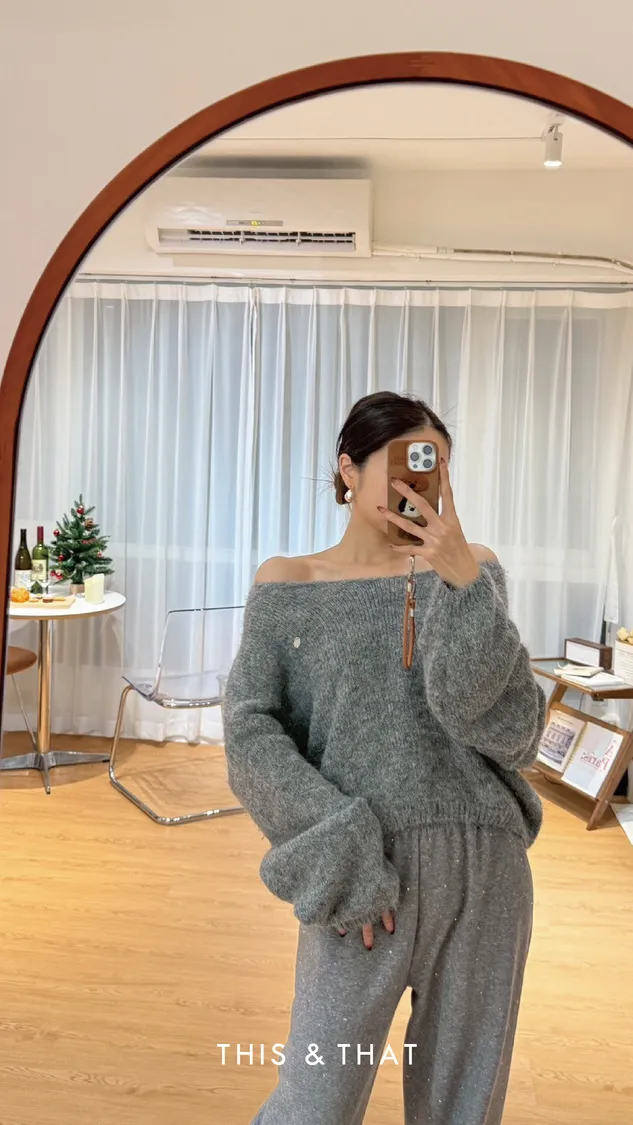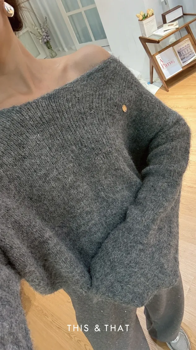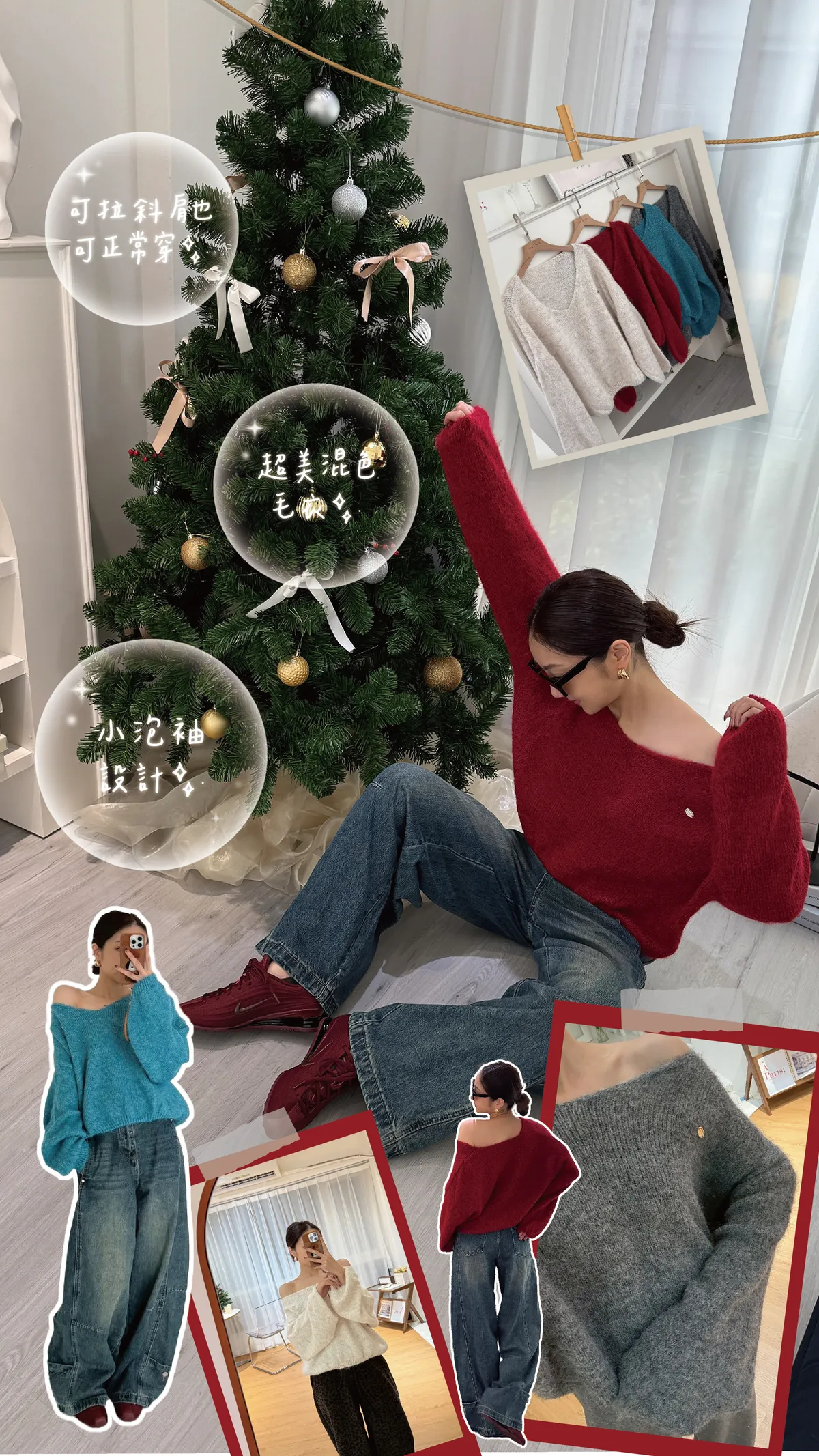 FW337 可拉斜肩~銀標混色泡袖毛衣 - 4色