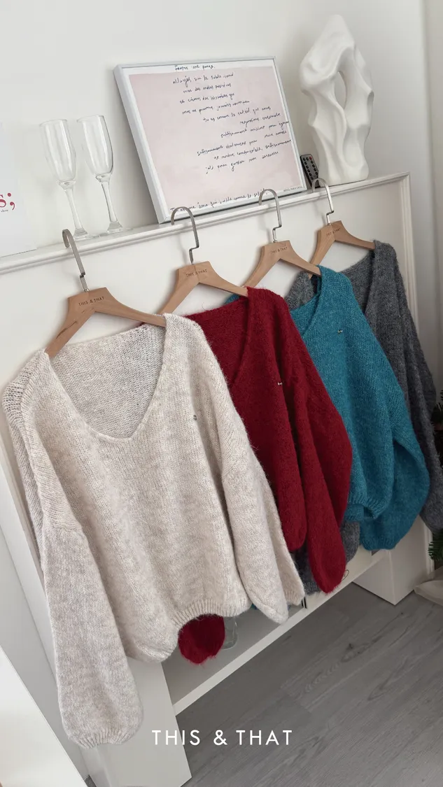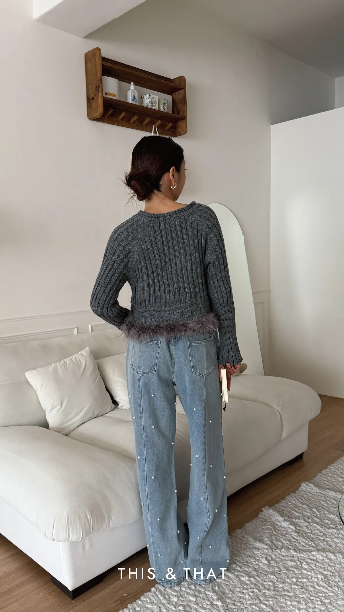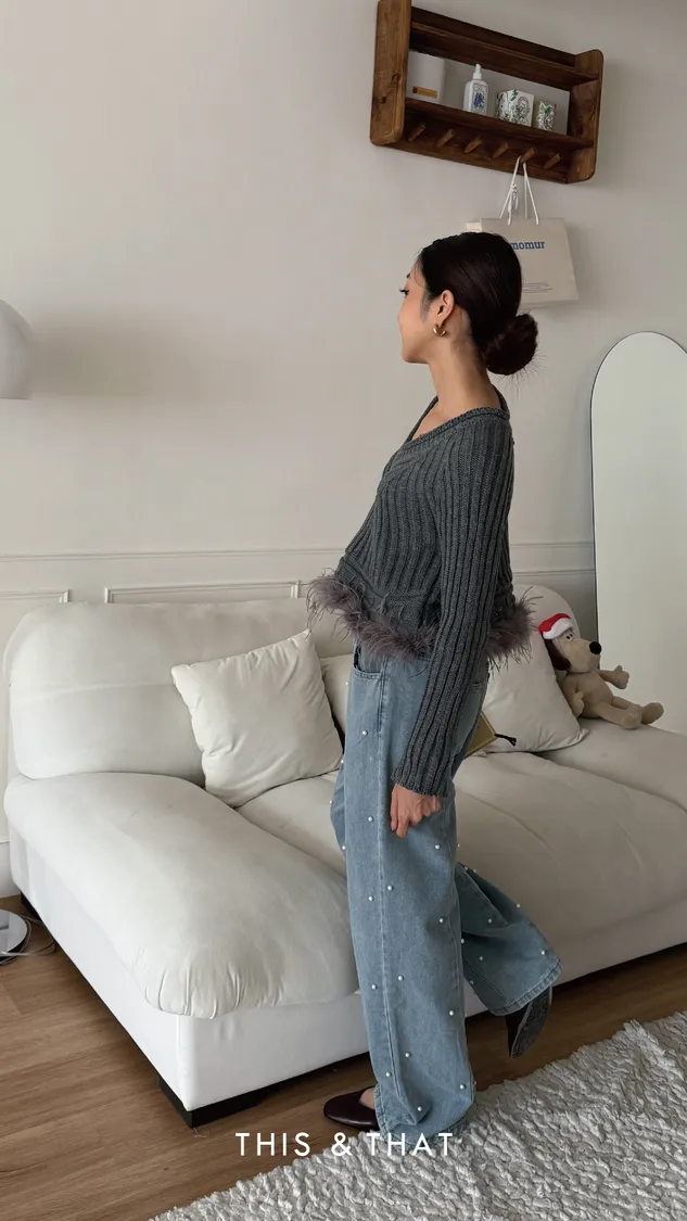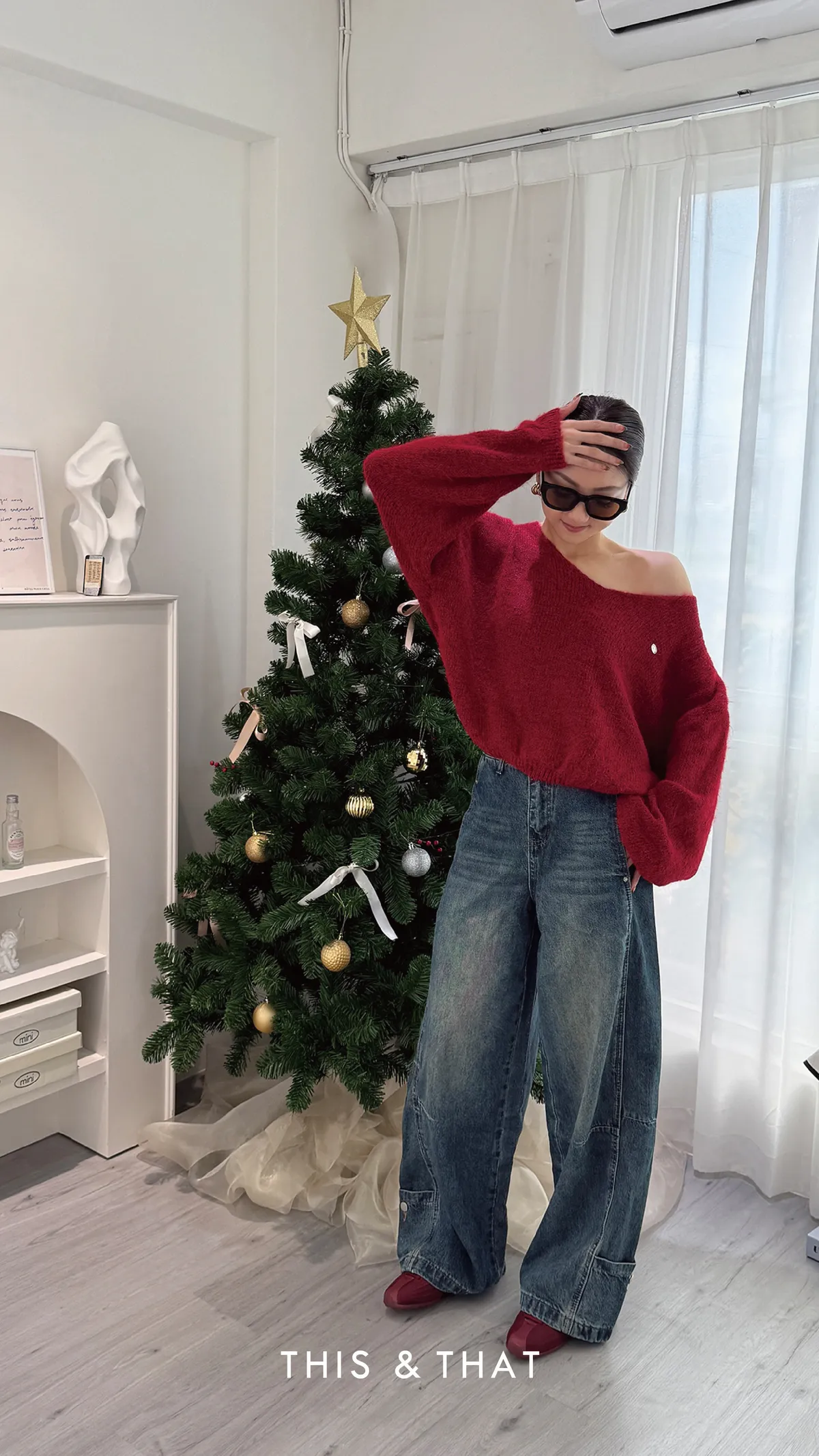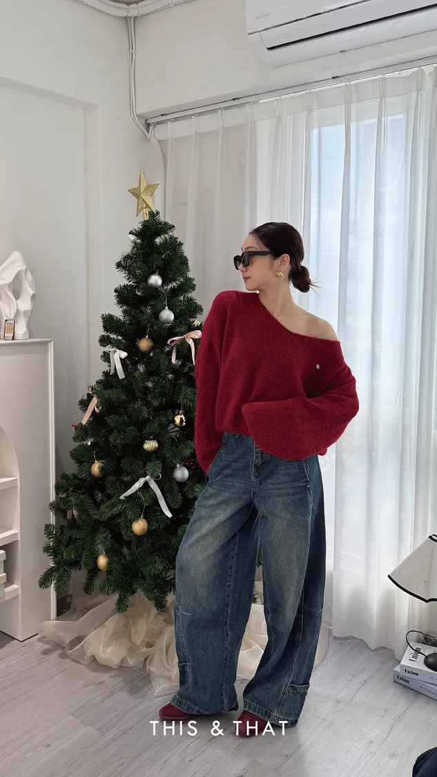 FW337 可拉斜肩~銀標混色泡袖毛衣 - 4色