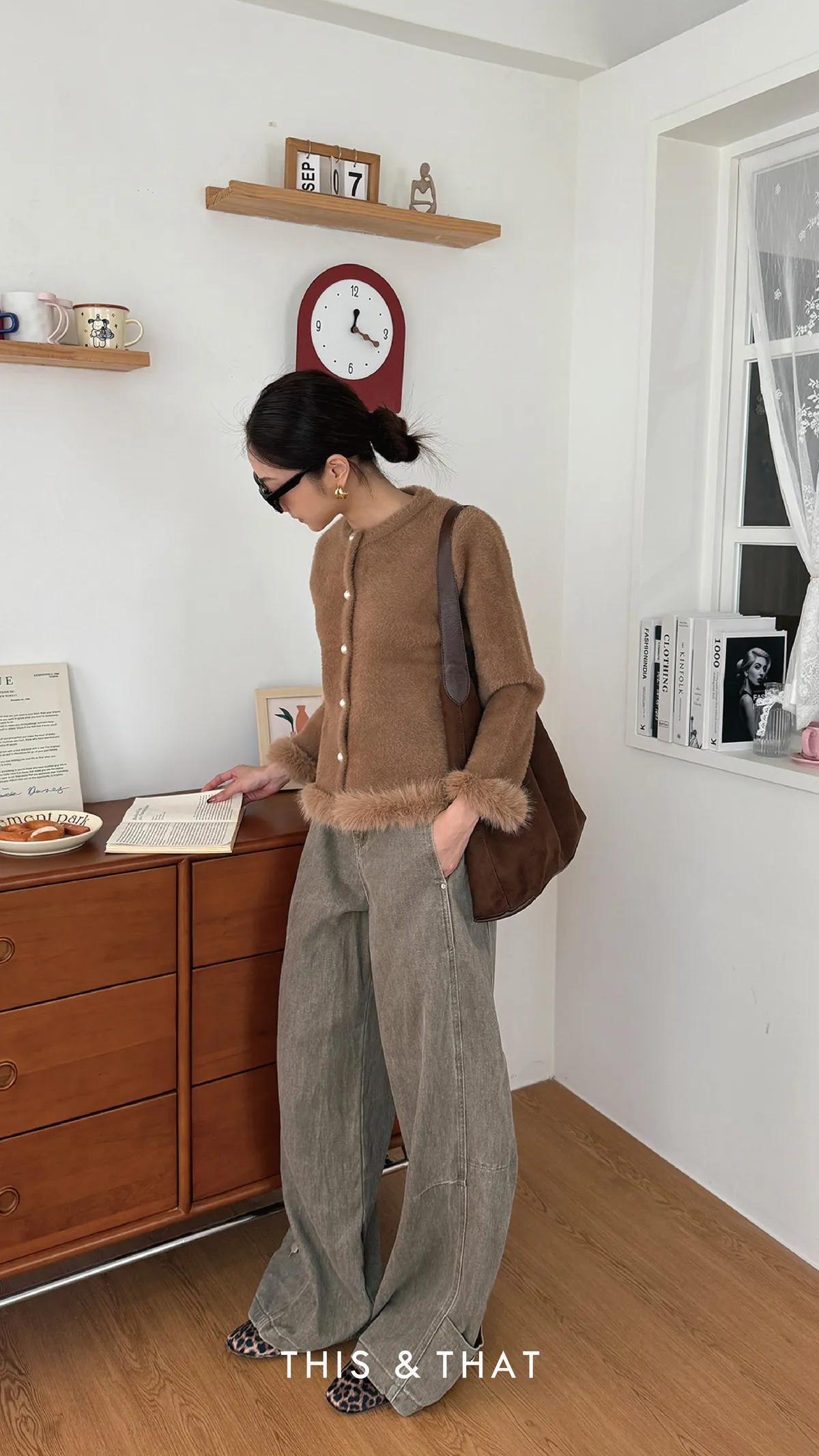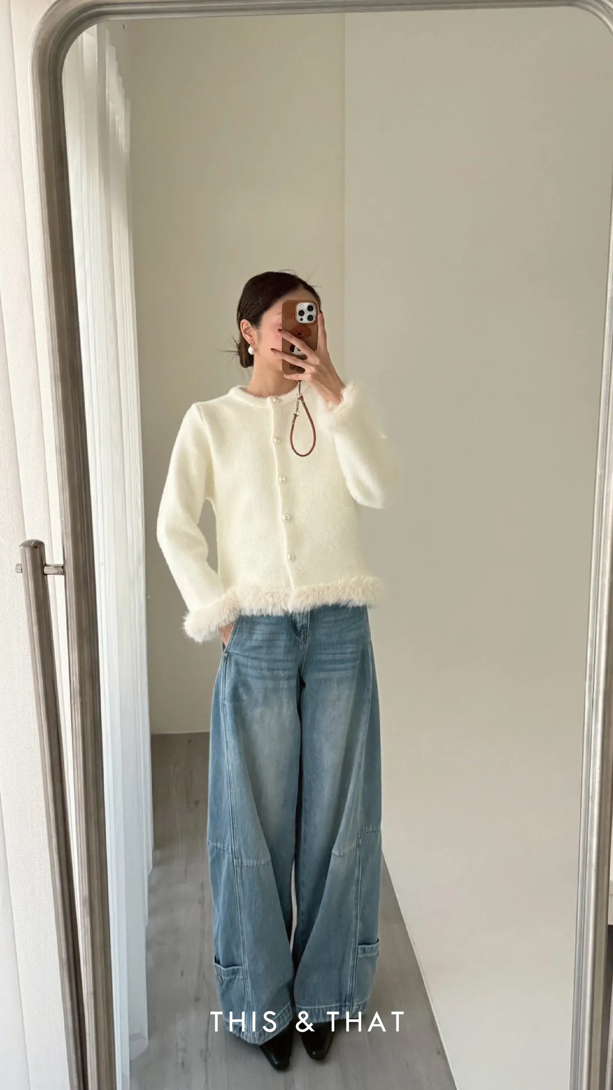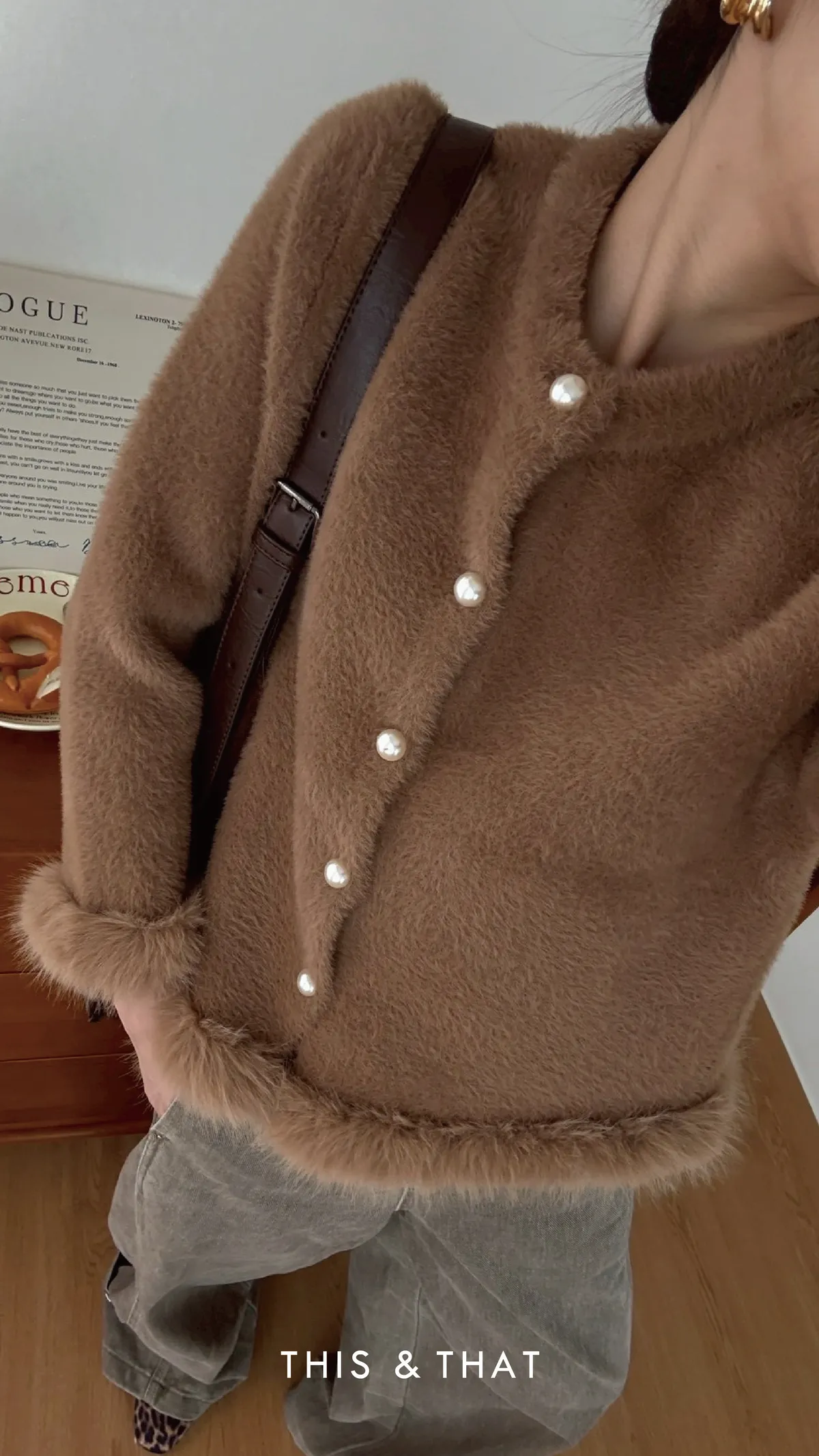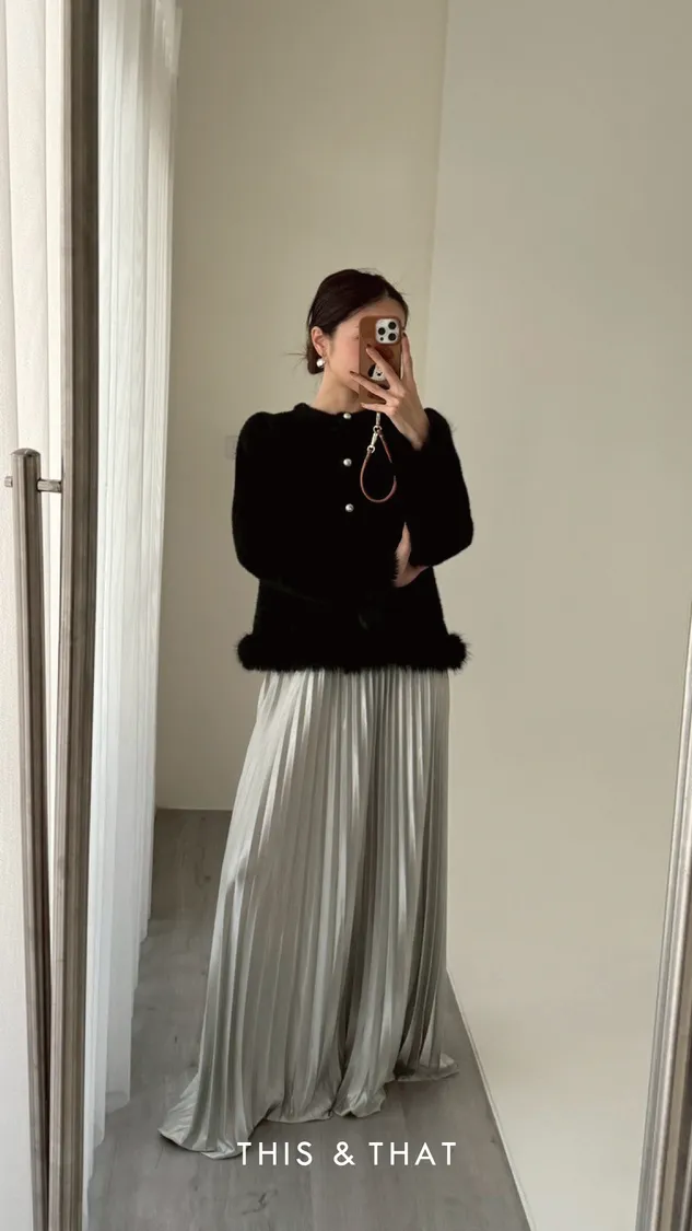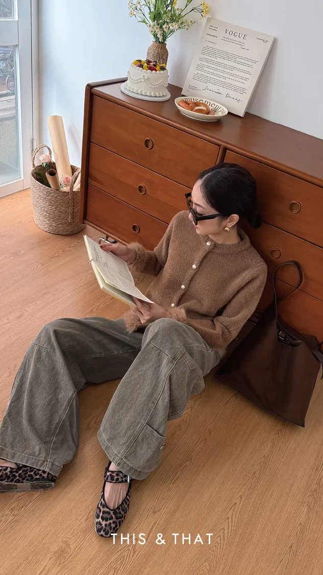 FW341 財閥家小女兒~水貂毛毛珍珠排釦開襟衫 - 3色