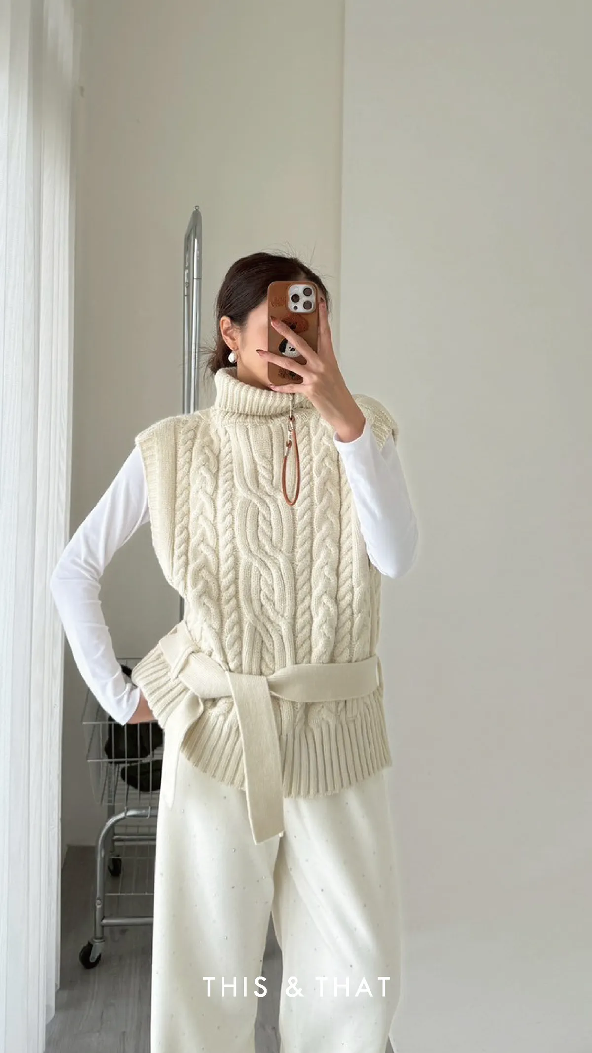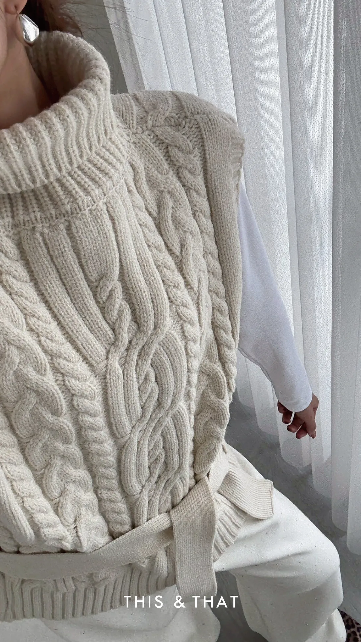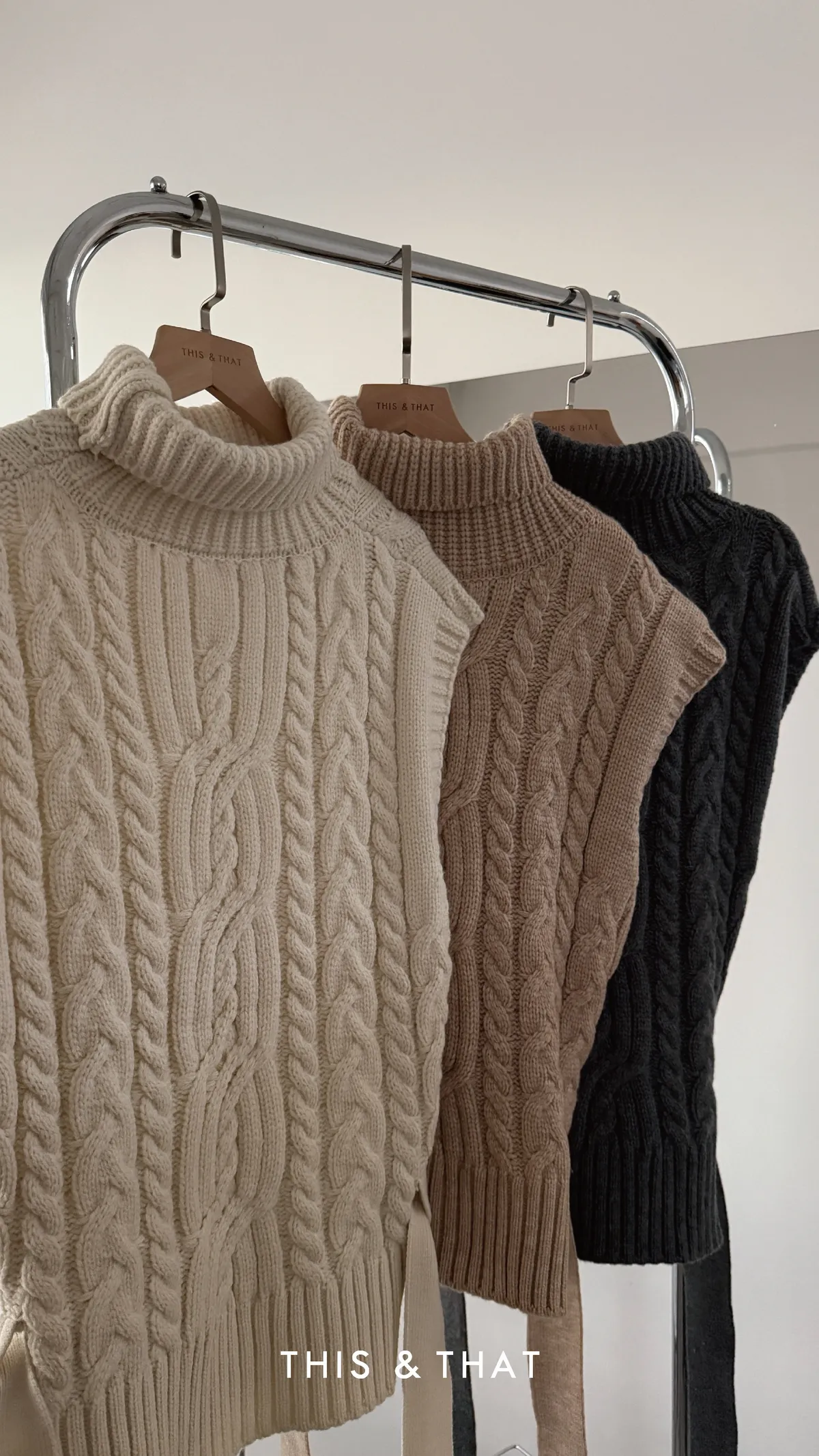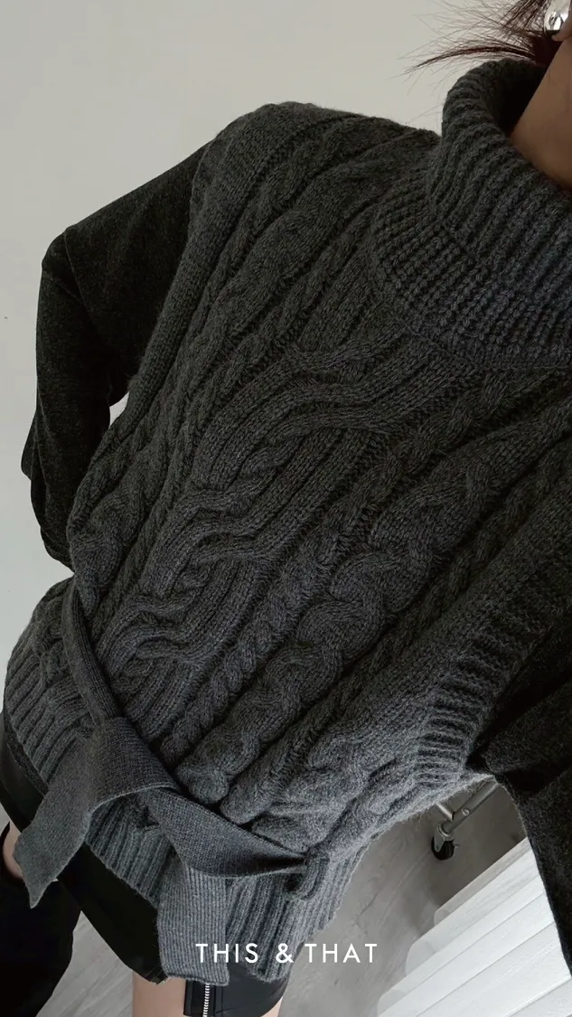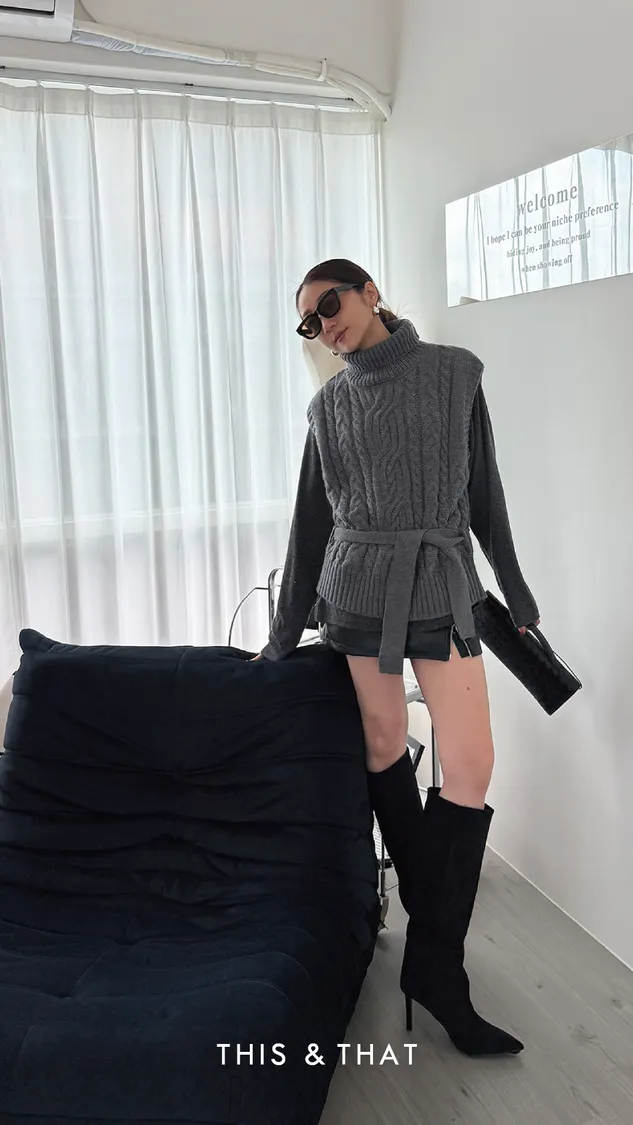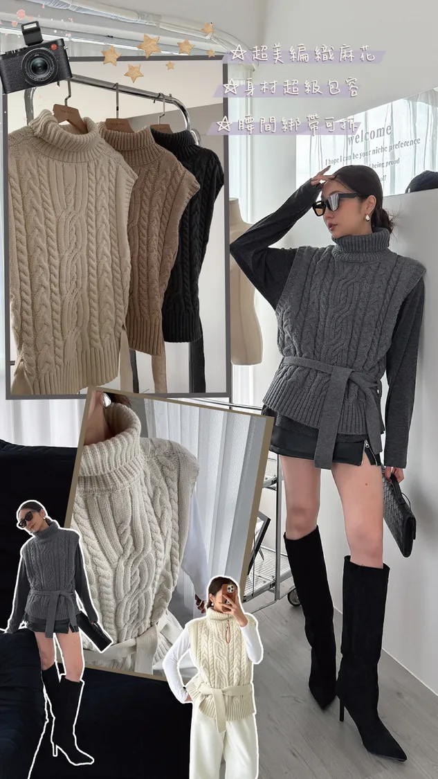FW342 針織麻花立領綁帶背心 - 3色