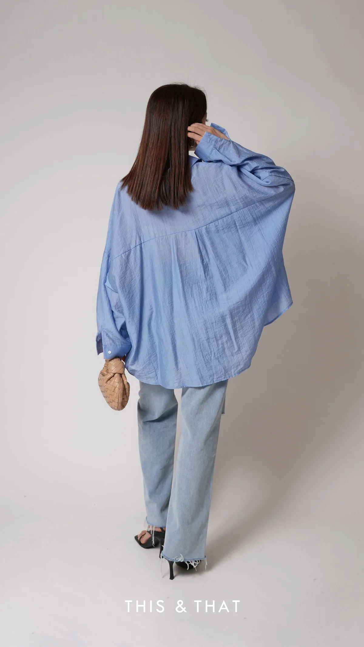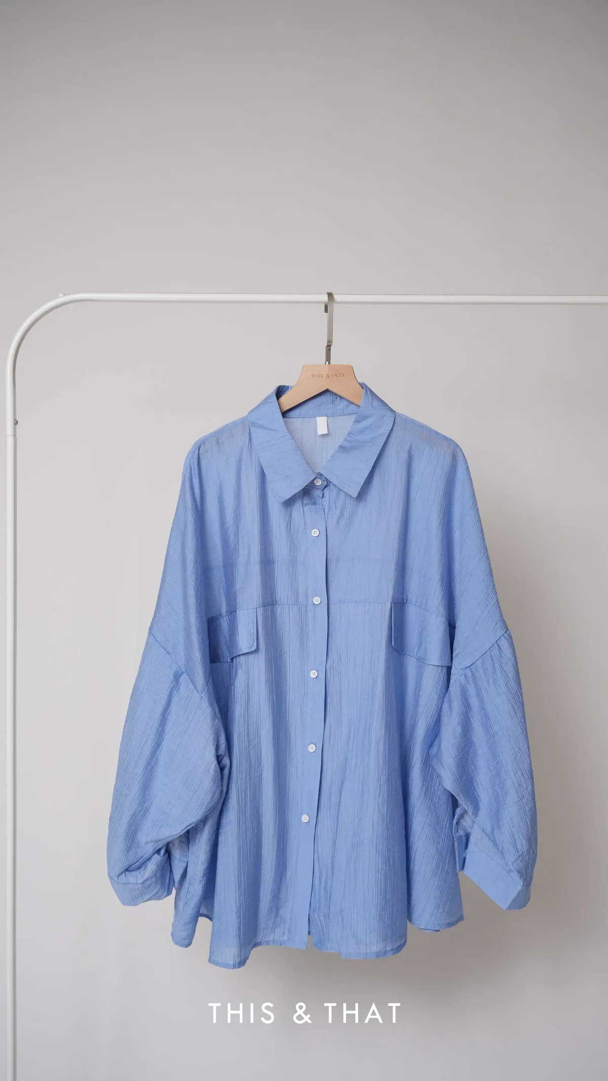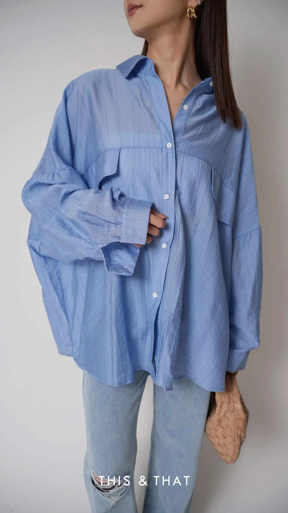 SS342 歐美KOL人手一件的藍色紋理寬版襯衫