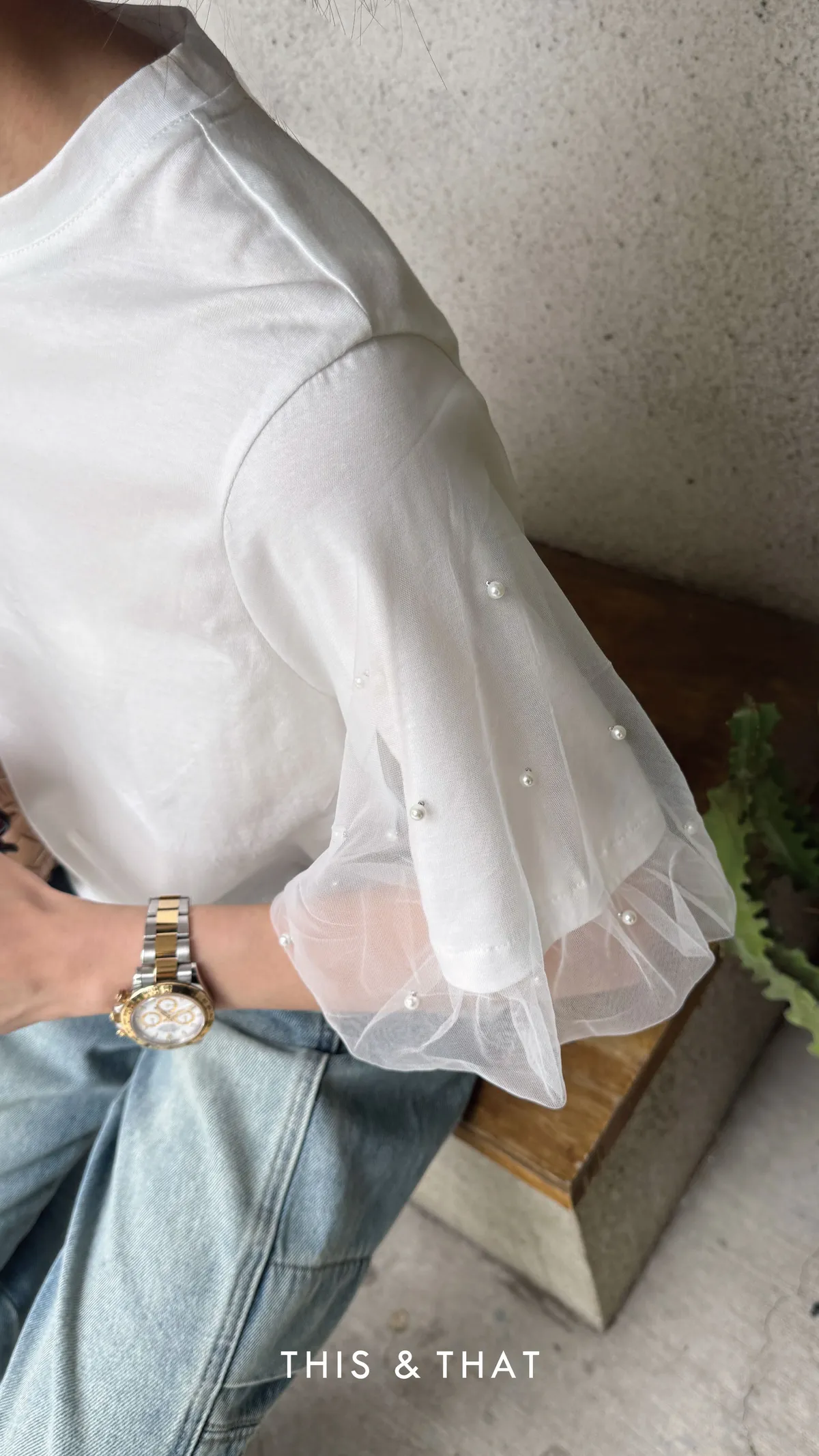 SS478 獨家!!珍珠紗袖Tee - 2色