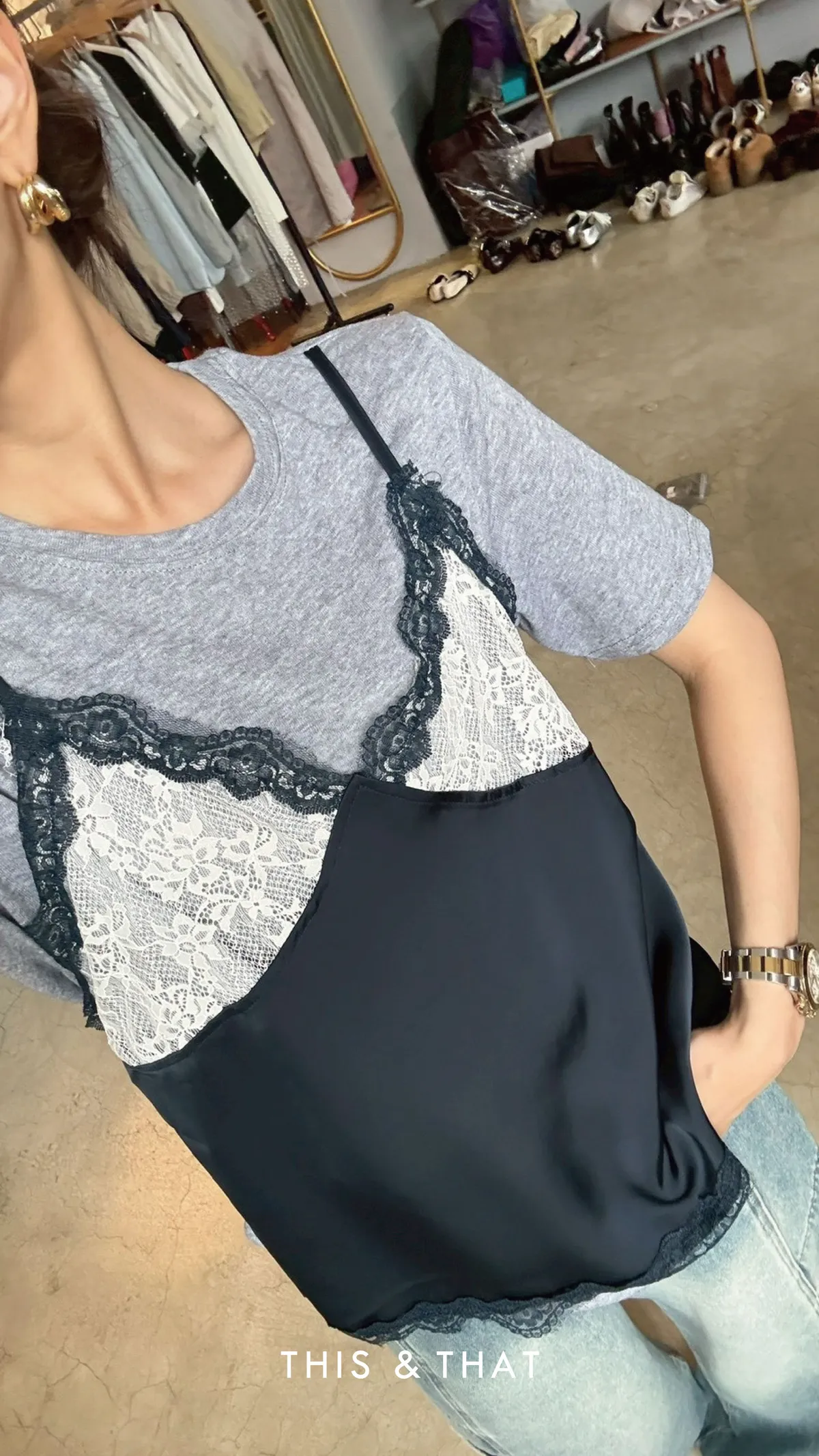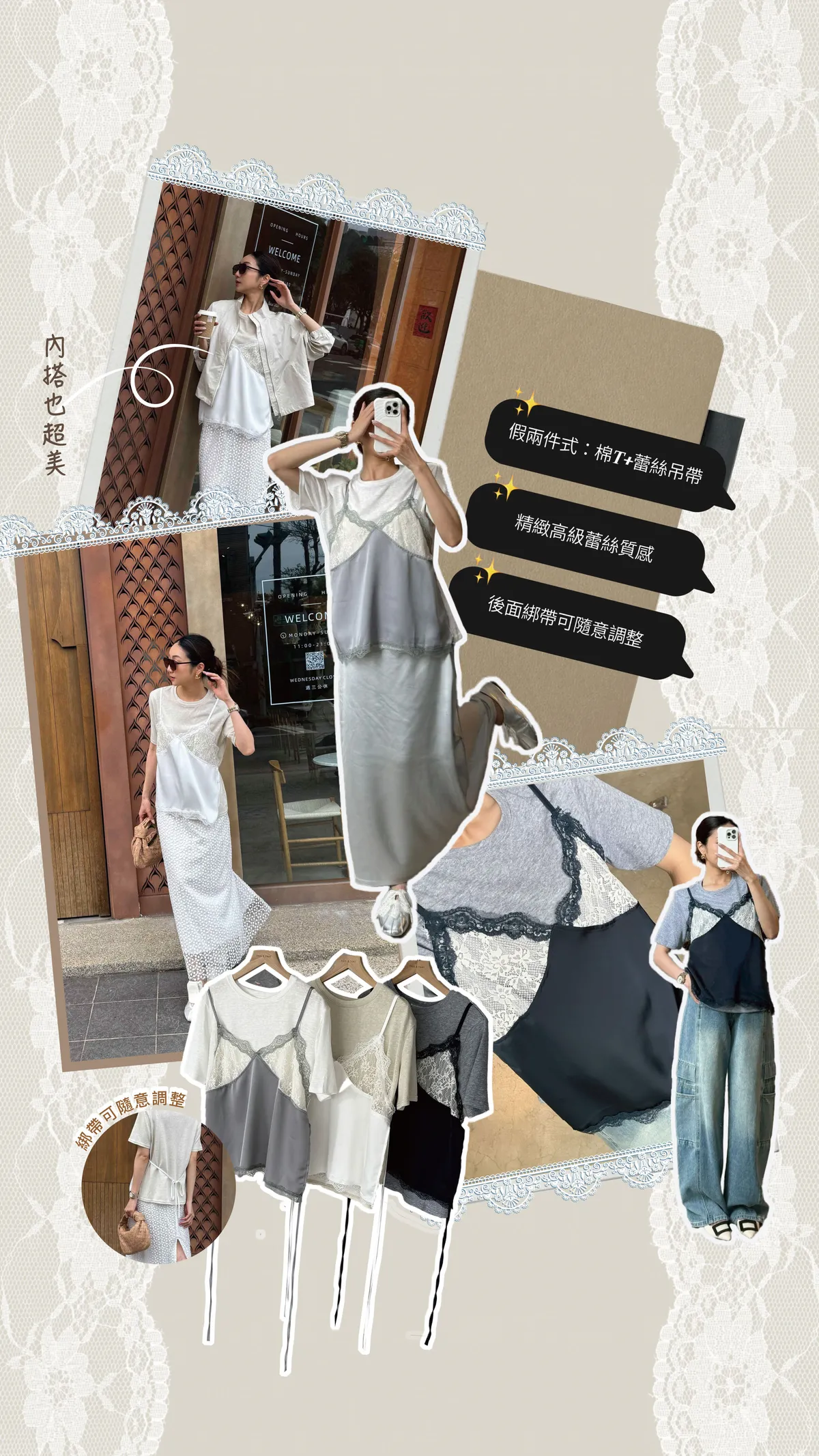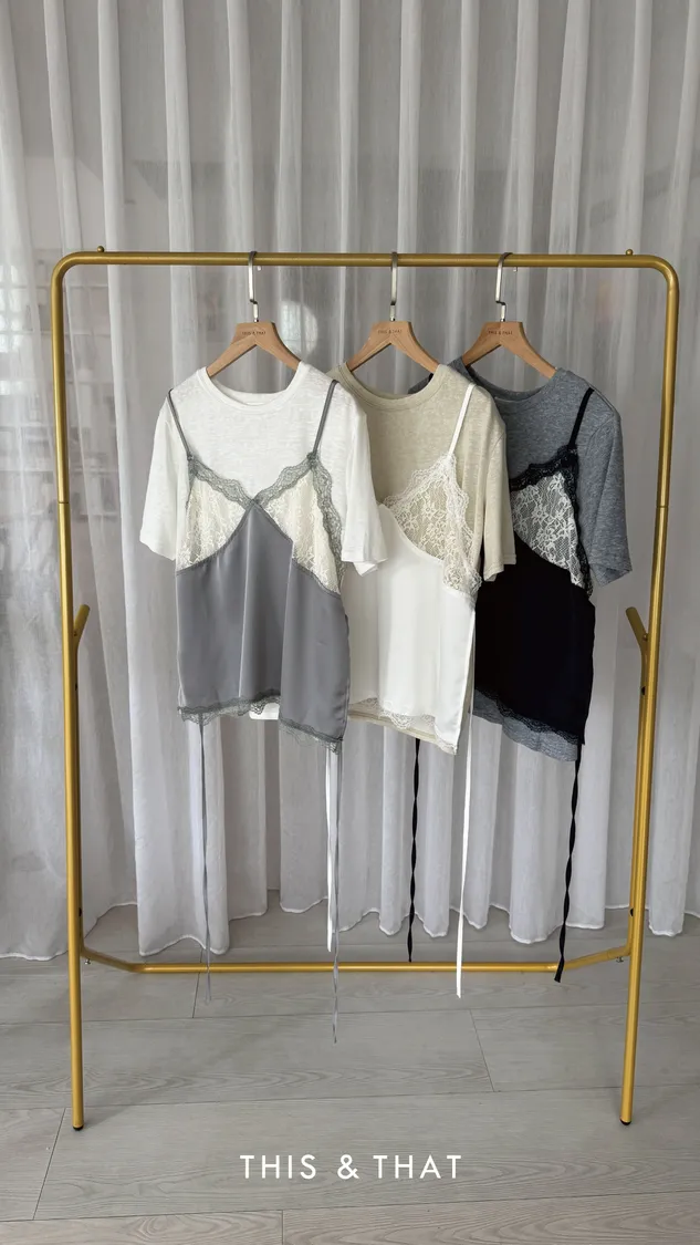 SS479 高質感蕾絲假兩件上衣 - 3色