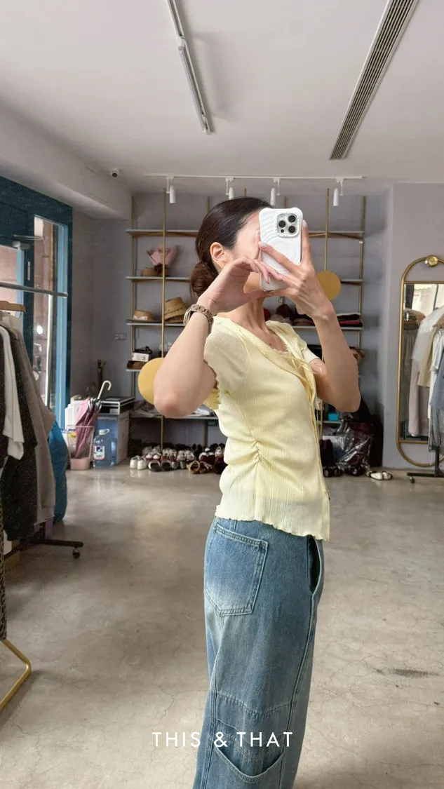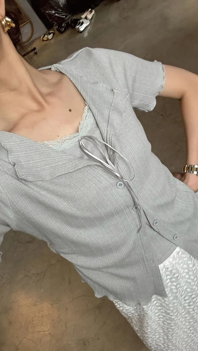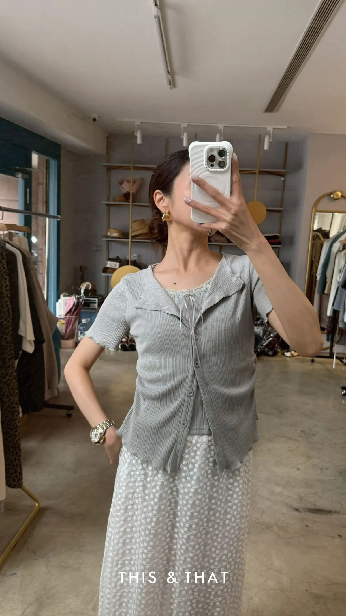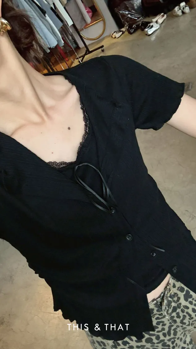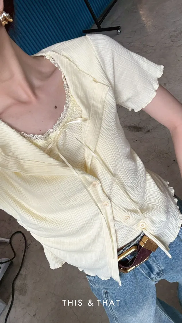 SS481 超美假兩件蕾絲排釦打底衣 - 4色